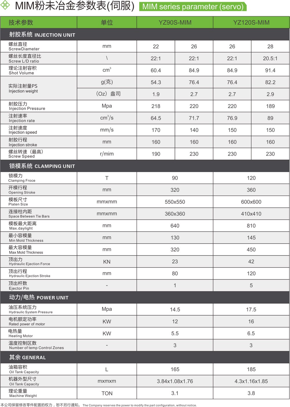 Special injection molding machine for MIM powder metallurgy